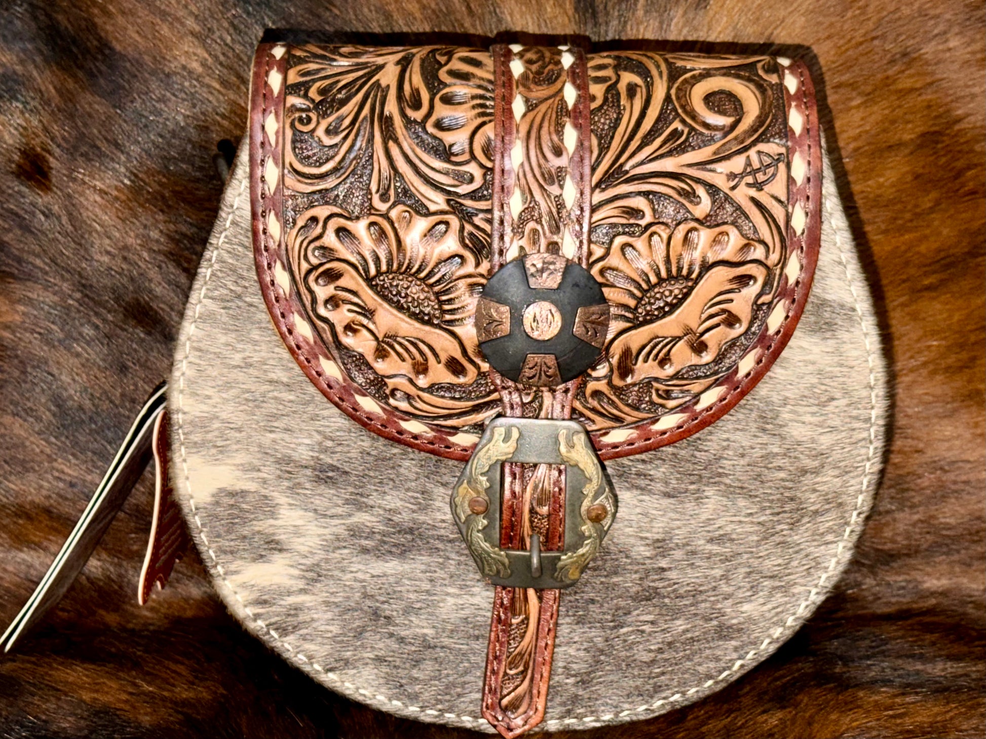This American Darling crossbody bag blends genuine leather craftsmanship with artisan hand-tooling and premium hair-on cowhide for a refined Western look. Designed for comfort and convenience, the structured silhouette and adjustable strap make it easy to carry during daily errands, events, or travel. The front flap features detailed floral carving and classic Western hardware for added authenticity.